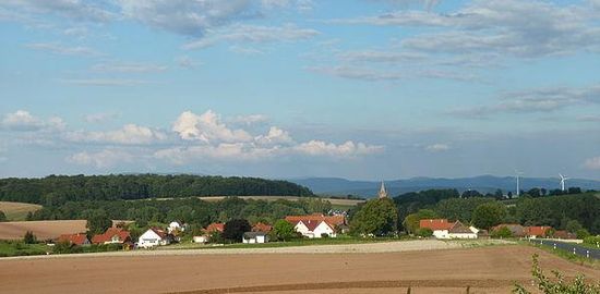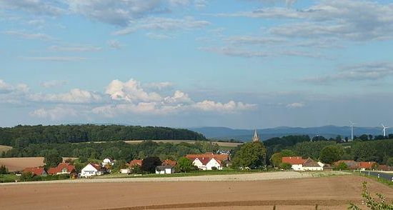 Die zentrale Ortslage gehört noch zur fruchtbaren Landschaft der Goldenen Mark. im Norden, Westen und Süden wird der Ort von bewaldeten Höhen umgeben.