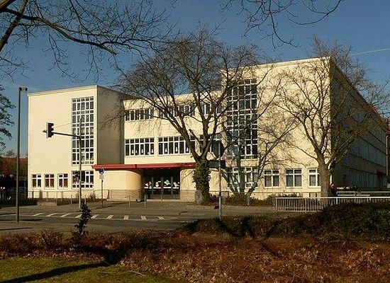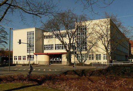 Der Schulbau ist ein dreigeschossiges Gebäude mit Flachdach, das aus zwei höheren Seitentrakten mit Klassenzimmern und einem niedrigeren Mittelteil als Hallenbau besteht. Ursprünglich befanden sich im westlichen Seitentrakt die Klassenzimmer der Mädchen und im östlichen Seitentrakt die Klassenräume der Jungen. Der Hallenbau im Mittelteil ist eine 25 Meter lange und 14 Meter breite multifunktionale Sport- und Festhalle, die das Zentrum der Schule bildet. Ursprünglich war sie durch ein Oberlicht aus Luxfer-Glasprismen belichtet, das Tageslicht einließ.