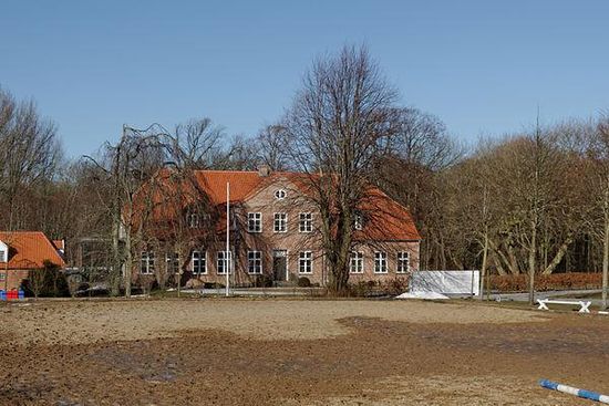 Das damalige Stvibu auf dem heutigen Gebiet des Gutes soll bereits im Jahre 1197 bestanden und zum Michaeliskloster in Schleswig gehört haben. Später war es eine bischöfliche Burg, die wahrscheinlich südwestlich des heutigen Standorts lag. Die Burg, mit dem Namen Castrum, wurde mehrmals geplündert und zerstört, so in den Jahren 1410 und 1417. Die Bischofsburg wurde danach wieder aufgebaut. 1539 wurde die Burg von der Familie Ahlefeld auf Saxdorf gekauft. Im Jahre 1646 kaufte Benedikt Pogwisch das Gut. Die Besitzer wechselten dann mehrmals, 1914 kaufte es Peter Kruse. Seit 2005 gehört das Gut dem Reeder und Unternehmer Dr. Bernd Kortüm.