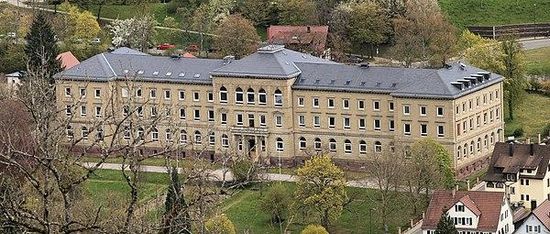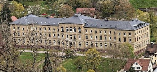 Ende der 1870er Jahre beschloss die württembergische Regierung zur Behebung des Lehrermangels im Land die Einrichtung eines staatlichen Lehrerseminars. Es war das vierte seiner Art nach den älteren Einrichtungen in Esslingen, Nürtingen und Künzelsau. Die Stadt Nagold, die sich als Standort bewarb, setzte sich unter anderem gegen die Konkurrenten Calw und Herrenberg durch. Unweit des Bahnhofs entstand in den Jahren 1878 bis 1881 auf einer Terrasse über der Nagold ein imposantes Schulgebäude nach Plänen des Stuttgarter Oberbaurats Karl von Sauter. Der Bau im Stil der italienischen Neorenaissance hat eine 93 Meter breite Hauptfront mit einer Verkleidung aus Hochdorfer Lettenkohlenstandstein. Zum Schulkomplex gehörten ein großzügiger Garten mit Turn- und Spielplatz sowie eine Turnhalle. Finanziert wurde der Bau aus den französischen Reparationszahlungen nach dem Deutsch-Französischen Krieg.