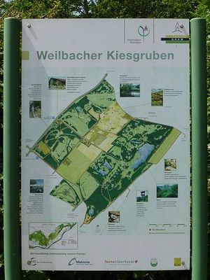 Ende der 1970er Jahre stellten die Weilbacher Kiesgruben eine durch ungeordneten Kiesabbau geprägte Landschaft dar. Sie wurden als wilde Mülldeponie und für Moto-Cross-Rennen genutzt. Zur Beseitigung dieser Landschaftsschäden durch eine sinnvolle Rekultivierung gründeten im Jahr 1980 die Stadt Flörsheim, der Main-Taunus-Kreis und der damalige Umlandverband Frankfurt die Gesellschaft zur Rekultivierung der Kiesgrubenlandschaft Weilbach mbH . Später traten die Städte Hattersheim und Hochheim der Gesellschaft bei. 1991 wurde das Naturschutzhaus Weilbacher Kiesgruben eröffnet, welches eine bedeutende Umweltbildungseinrichtung im Rhein-Main-Gebiet darstellt.