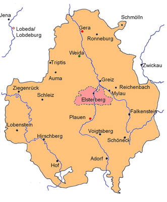 Das Vogtland ist eine Region im Grenzgebiet von Bayern, Sachsen, Thüringen und Böhmen. „Vogtland“ bezieht sich auf den ehemaligen Herrschaftsbereich der Vögte von Weida, Gera, Plauen und Greiz.
