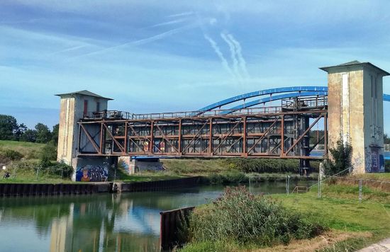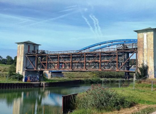 Unweit der "Schiefen Brücke" befindet sich eine weitere Sehenswürdigkeit: Die historische Kanalbrücke über die Stever, die den Dortmund-Ems-Kanal über den Fluss leitete. Sie wurde 1894 errichtet und ähnelt in ihrer Bauweise sehr stark der Kanalüberführung an der Lippe (s.u.). Die Strecke führt dann weiter bis zum historischen Sperrtor in Olfen, mit dem das Ende der Alten Fahrt fast erreicht ist.