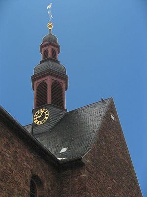 Die ursprüngliche von 1728 bis 1741 erbaute Saalkirche mit dreiseitig geschlossenem Chor wurde 1935 nach Norden und Süden durch Anbauten zu einer Kreuzkirche erweitert. Aus dem Satteldach der ehemaligen Saalkirche erhebt sich im Bereich der Vierung ein sechseckiger, mit einer bauchigen Haube und darauf sitzender Laterne bedeckter Dachreiter, der die Turmuhr und hinter den Klangarkaden den Glockenstuhl mit zwei Kirchenglocken beherbergt.