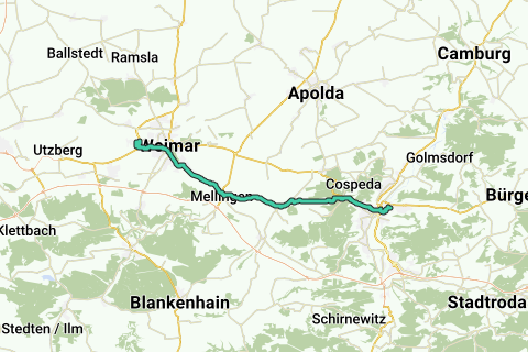 <p><a class="routeYou_embed" href="https://app.routeyou.com/de-de/route/view/10772611?utm_source=embed&utm_medium=article&utm_campaign=routeshare&navigation=external" title="Jena - Weimar - RouteYou" target="_blank"><img src="https://image.routeyou.com/embed/route/960x670/10772611-de@2x.png" style="width: 100%; height: auto;" alt="Jena - Weimar"></a></p>