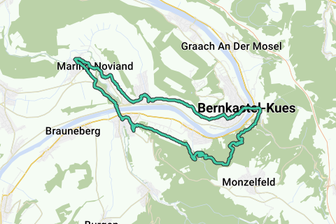 Abwechlungsreiche Tour mit wundervollen Aussichten.Traumhafte passagen über gepflegten Weinberge mit schönste Aussicht auf die Stadtteile Bernkastel, Kues, Lieser, Wehlen und Andel. Überwiegend bergiges Gelände.