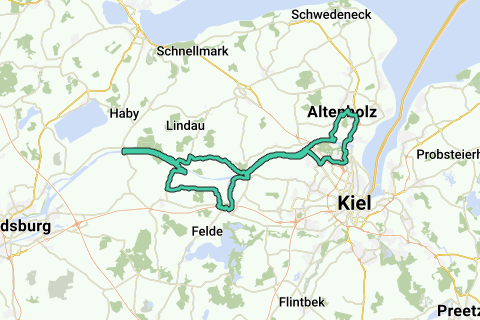 Von Altenholz zum NOK. Weiter nach Westen bis Sehestedt und südlich zurück.