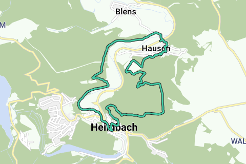 In Hausen an der Burg überqueren wir die Rur und wandern dann in Waldgebiet der Rur entlang nach Heimbach. Hier überqueren wir die Rur erneut und wandern über den Kreisverkehr Richtung Wanderparkplatz an der Rur. In der Hengebachstraße biegen wir links ab "Am Eichelberg" und wandern bergan in den Wald. Durch das "Fischbachtal" gehts dann weiter entlang "Eichelberg" und "Rensberg" und über die "Hausener Bucht" zurück zum Ausgangspunkt. Leichte bis mittelschwere Wanderung.