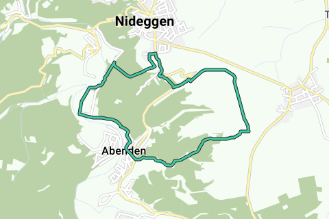 Der Weg führt auf der Höhe durch ein "Wassereinzugsgebiet" - Wasser, das unten im Tal wieder in Form zahlreicher Quellen an die Oberfläche tritt. Verschiedene Einrichtungen zur Wassergewinnung zeigen sich am Weg. In Abenden finden Sie ein Quellenhaus, aus dem Wasser nach Nideggen hochgepumpt wird. Landschaftlich eine schöne Tour, jedoch mit Auf und Abstiegen.