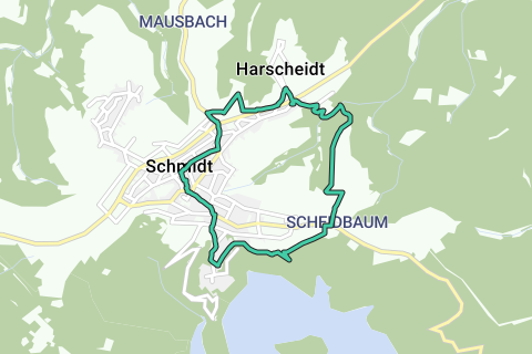 Streckenverlauf: Streckenverlauf: Über die schönen Aussichtspunkt des Dorfes: Schöne Aussicht-Hubertushöhe-Scheidtbaum-Schlehbachtal