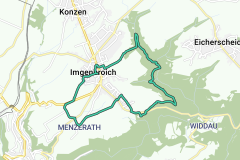 Von Imgenbroich startend wandern wir ins Belgenbachtal, begleitet von seinen zahlreichen Bächen. Hier treffen wir auch auf die Belgenbacher Mühle. Wir wandern wieder Richtung Imgenbroich und hier zum Ortsteil Menzerath, vorbei an den Menzerather Weiher um danach wieder zum Ausgangspunkt zurückzukehren.