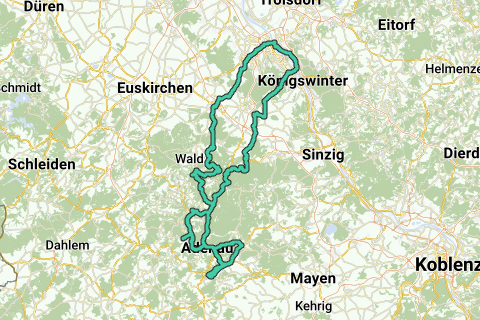 Start in Bonn Beuel, über Rheinbach in die Eifel zum Nürbrgring und via Godesberg wieder zurück.