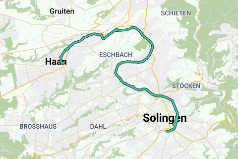 Korkenzieherbahn ab Haan Mitte nach Solingen möglichst abseits der Hauptstraße