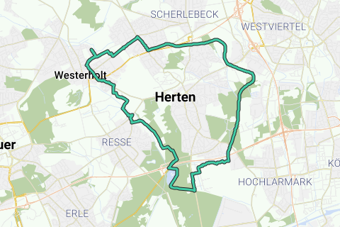 Die Route führt über alte Bahntrasse zur Zeche Ewald, dann zum Ewaldsee und zurück nach Westerholt