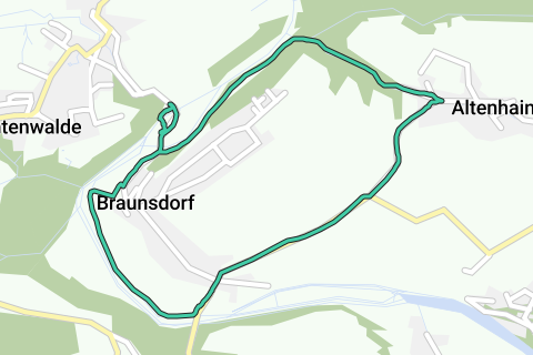 Start Harrasdenkmal (Braunsdorf) - "Alte Mühle" - Richtung Harrasfelsen - über die Zschopaubrücke („Fünferbrücke“) nach Lichtenwalde - entlang des Liederweges - vorbei an der Brücke zum Harrasfelsenaufstieg - entlang am Altenhainer Kriegerdenkmal - Richtung Niederwiesa - vorbei am Braunsdorfer Viadukt - entlang des Zschopautals mit herrlicher Blick zum Schloss Lichtenwalde - weiter zum Braunsdorfer Wehr, über die „Fünferbrücke“ zurück zum Ausgangspunkt am Harrasfelsen Denkmal
