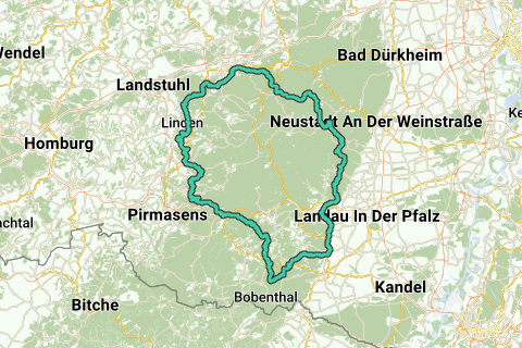 Lassen Sie sich während dieser Route von einem imposanten Bauwerk überraschen (Burg Spangenberg). Sie können diese Route irgendwo starten. Die Kirche (Rochuskapelle) ist aber bestimmt ein guter Startpunkt. Diese Route führt über unbefestigte Wege. Bei trockenem Wetter sind sie aber in einem hervorragenden Zustand. Entlang dieser Route legen Sie auf jeden Fall schöne und ruhige Wege zurück. Die Steilhänge bekommen Sie kostenlos geschenkt! Eine Sehenswürdigkeit entlang dieser Route müssen Sie auf jeden Fall gesehen haben: Fernmeldeturm Kaiserslautern. Kurz: zu empfehlen!