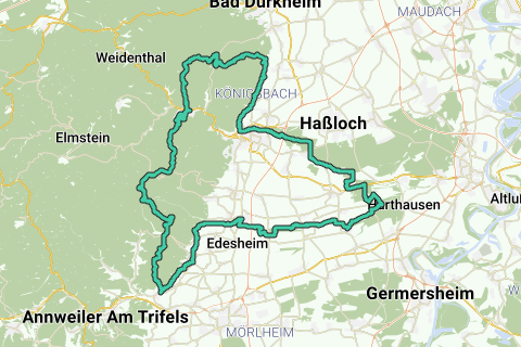 Wer gerne sinnen oder "verweilen" möchtet: halten Sie mal am Kloster (Kloster Lambrecht). An einem schwülen Sommertag bietet das Schloss (Haardter Schloss) eine willkommene frische Ruhepause (wenn geöffnet). Genießen Sie während dieser Route ruhige, unbefestigte Wege. Eine Sehenswürdigkeit entlang dieser Route müssen Sie auf jeden Fall gesehen haben: Winzinger Wassergescheid.