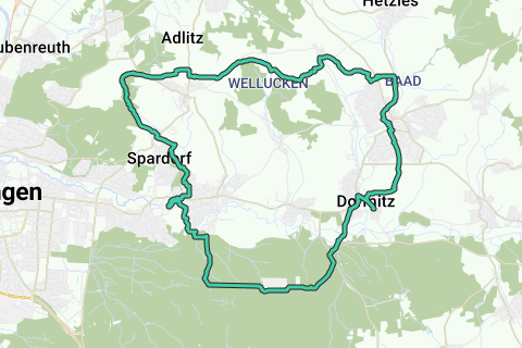 Eine Route wobei Sie sich sicher nicht langweilen. Diese Route führt über unbefestigte Wege. Bei trockenem Wetter sind sie aber in einem hervorragenden Zustand. Wenig Chancen, dass Sie entlang dieser Route viel Autos sehen. Diese Tour führt an einem Kloster entlang: Kloster Neunkirchen am Brand. Nehmen Sie sich Zeit für diese Route. Insgesamt, eine schöne Route!