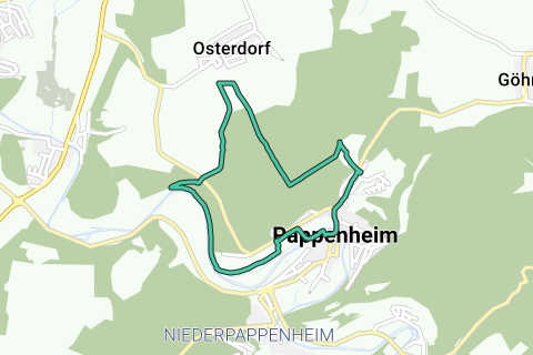 Genießen Sie mit dieser Tour die Natur in Pappenheim. Diese Route kann ab und zu holprig sein. Ein Teil der Route ist unbefestigt. Während dieser Route können Sie auch die Aussicht auf das Schloss genießen (Neues Schloss). Halten Sie mal und meditieren Sie mit Aussicht auf ein Kloster: Kloster Pappenheim. Diese Tour lässt Sie die Natur wieder entdecken. Eine Route, die Sie sicher bezaubern wird. Fast vergessen, halten Sie bestimmt auch mal an Stadtkirche St. Marien.
