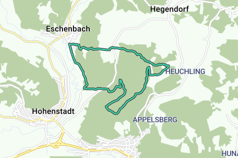 Eine schöne Schleife durch Pommelsbrunn. Eine Route wobei Sie sich sicher nicht langweilen. An einem schwülen Sommertag bietet das Schloss (Schloss Eschenbach) eine willkommene frische Ruhepause (wenn geöffnet). Nehmen Sie sich Zeit für diese Route.