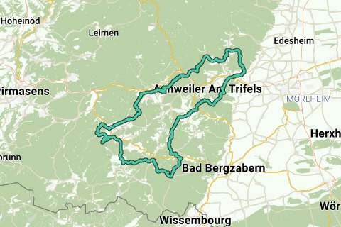 Sie können diese Route irgendwo starten. Die Kirche (Evangelische Kirche Malstatt) ist aber bestimmt ein guter Startpunkt. Lassen Sie sich während dieser Route von einem imposanten Bauwerk überraschen (Burg Berwartstein). Wenig Chancen, dass Sie entlang dieser Route viel Autos sehen. Die Route führt teilweise über unbefestigte Wege. Schöne Aussichten bekommen Sie kostenlos geschenkt! Wer Wasser mag, kommt über diese Route zu seinem Recht. Der Fluss Pfalzbach wird Ihnen aufs Wort gehorchen. Für denjenigen, der es ökologischer halten möchtet: kombinieren Sie diese Fahrradschleife mit dem öffentlichen Verkehr (Bahnhof Bahnhof Dahn). Fast vergessen, halten Sie bestimmt auch mal an Landauer Hütte.