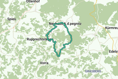 Entlang dieser Route legen Sie auf jeden Fall schöne und ruhige Wege zurück. Entdecken Sie die Region entlang unbefestigter Wege. Bestimmt mal halten an Burg Veldenstein. Genießen im Quadrat! Nehmen Sie sich Zeit für diese Route.