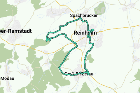 Über Berge und Täler erkunden Sie Reinheim. Wer gerne sinnen oder "verweilen" möchtet: halten Sie mal an der Kirche (Evangelische Pfarrkirche Groß-Bieberau). Genießen Sie die Ruhe und Stille am Wasser vom Fluss Fischbach entlang. Für denjenigen, der es ökologischer halten möchtet: kombinieren Sie diese Fahrradschleife mit dem öffentlichen Verkehr (Bahnhof Bahnhof Reinheim). Diese Route kann ab und zu holprig sein. Ein Teil der Route ist unbefestigt. Blicken Sie gut umher. Sonst werden Sie einige Perlen entlang dieser Route verpassen.