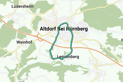Angenehmes Kennenlernen, Altdorf bei Nürnberg. Über diese Fahrradschleife erkunden Sie die schönsten Wege von Pflegschloss Altdorf. Wenig Chancen, dass Sie entlang dieser Route viel Autos sehen. Die Route führt teilweise über unbefestigte Wege. Eine Route wobei Sie sich sicher nicht langweilen. Fast vergessen, halten Sie bestimmt auch mal an St. Laurentius.