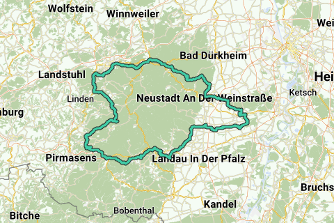 Sie können diese Route irgendwo starten. Das Schloss (Burg Frankenstein) ist aber bestimmt ein guter Startpunkt (und Ruhepunkt). Genießen Sie während dieser Route ruhige, unbefestigte Wege. Eine Sehenswürdigkeit entlang dieser Route müssen Sie auf jeden Fall gesehen haben: Fernmeldeturm Kaiserslautern.