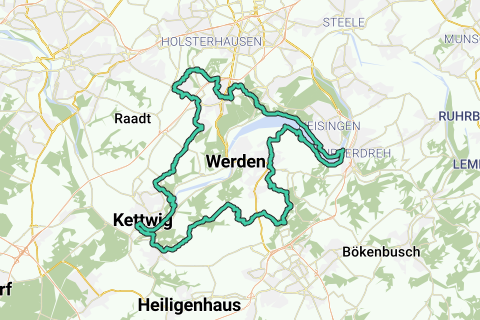 Diese Route führt entlang der schönsten Wege durch Ruhrhöhen. Eine schöne Schleife durch Essen. Das Herz der Stadt kennenlernen. Es ist nicht immer ruhig während dieser Route, aber Sie werden schon neue Teile der Stadt kennenlernen. Steigen Sie mal ab, und bewundern Sie das Schloss entlang dieser Route (Schloss Baldeney). Für denjenigen, der es ökologischer halten möchtet: kombinieren Sie diese Fahrradschleife mit dem öffentlichen Verkehr (Bahnhof U-Bahnhof Messe West/Süd/Gruga). Diese Route führt entlang einiger unbefestigten Wege. Diese Tour ist bestimmt nicht überall flach. Eine Route für den Mehrwertsucher!