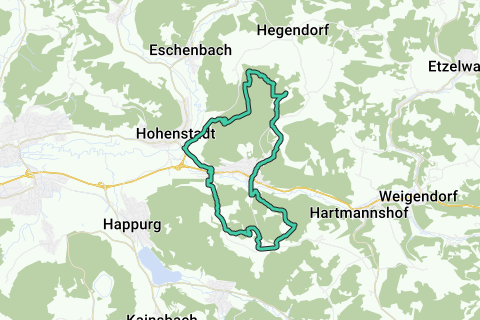 Eine schöne Schleife durch Pommelsbrunn. Entlang dieser Route legen Sie auf jeden Fall schöne und ruhige Wege zurück. Genießen Sie während dieser Route ruhige, unbefestigte Wege. Nehmen Sie sich Zeit für diese Route.