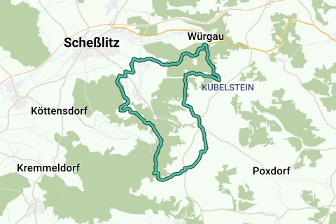Eine schöne Schleife durch Scheßlitz. Entlang dieser Route legen Sie auf jeden Fall schöne und ruhige Wege zurück. Während dieser Route können Sie auch die Aussicht auf das Schloss genießen (Giechburg).