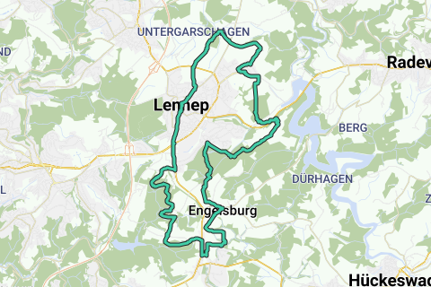 Eine schöne Schleife durch Remscheid. Diese Tour ist bestimmt nicht überall flach. Entdecken Sie die Region entlang unbefestigter Wege. Genießen Sie entlang dieser Route die wunderschönen grünen Orte der Region. Eine Route wobei Sie sich sicher nicht langweilen. Eine lustige Pause während dieser Route ist ein Museumbesuch (Deutsches Röntgen-Museum). Fast vergessen, halten Sie bestimmt auch mal an Tuchmuseum Lennep.
