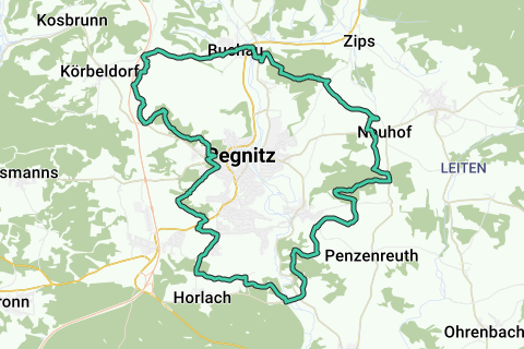 Eine hügelige Route durch Pegnitz. Entdecken Sie die Region entlang unbefestigter Wege. Die schönen Wege wechseln sich in schnellem Tempo ab.