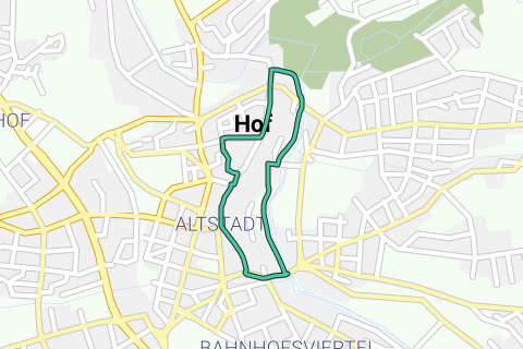 Eine schöne Schleife durch Hof. Das Herz der Stadt kennenlernen. Diese Route führt entlang der schönsten Wege durch St. Marien. Sie können diese Route irgendwo starten. Die Kirche (Hospitalkirche) ist aber bestimmt ein guter Startpunkt. Während dieser Route können Sie auch die Aussicht auf das Schloss genießen (Hofer Schloss). Diese Route erhält bestimmt 9 von 10 Punkten! Insgesamt, eine schöne Route!