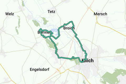 Eine schöne Schleife durch Jülich. Sie genießen bestimmt die wunderschönen Fernsichten entlang dieser Route. Wenig Chancen, dass Sie entlang dieser Route viel Autos sehen. Diese Route führt über unbefestigte Wege. Bei trockenem Wetter sind sie aber in einem hervorragenden Zustand. Die schönen Wege wechseln sich in schnellem Tempo ab. Bestimmt mal halten an Zitadelle Jülich.
