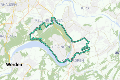 Ab und zu fahren Sie an einer stark befahrenen Kreuzung vorbei. Also, aufpassen während dieser Route. Eine schöne Schleife durch Essen. Es wäre kein übertriebener Luxus, wenn Sie mal an einem Straßencafé entlang dieser Route halten. Es wird schneidig! Das Herz der Stadt kennenlernen. Für denjenigen, der es ökologischer halten möchtet: kombinieren Sie diese Fahrradschleife mit dem öffentlichen Verkehr (Bahnhof Haltepunkt Essen-Holthausen). Sie können diese Route irgendwo starten. Die Kirche (St. Barbara) ist aber bestimmt ein guter Startpunkt. Wenig Chancen, dass Sie entlang dieser Route viel Autos sehen. Die Route führt teilweise über unbefestigte Wege. Bewundern Sie sicher auch mal die Sehenswürdigkeiten entlang dieser Route (u.a. Zeche Vereinigte Himmelsfürster Erbstollen). Alle werden mit mir einverstanden sein: eine schöne Route.