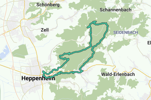 Eine schöne Schleife durch Heppenheim (Bergstraße). Während dieser Route können Sie auch die Aussicht auf das Schloss genießen (Heppenheimer Stadtschloss). Entlang dieser Route legen Sie auf jeden Fall schöne und ruhige Wege zurück. Diese Route führt über unbefestigte Wege. Bei trockenem Wetter sind sie aber in einem hervorragenden Zustand. Blicken Sie gut umher. Sonst werden Sie einige Perlen entlang dieser Route verpassen. Fast vergessen, halten Sie bestimmt auch mal an Ehemaliges Gesellenhaus Heppenheim.