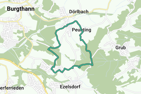 Eine schöne Schleife durch Burgthann. Wenig Chancen, dass Sie entlang dieser Route viel Autos sehen. Eine Route für den Mehrwertsucher!
