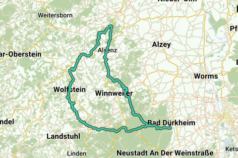 Diese Route kann man perfekt am Bahnhof (Bahnhof Frankenstein) starten. An einem schwülen Sommertag bietet das Schloss (Schloss Murrmirnichtviel) eine willkommene frische Ruhepause (wenn geöffnet). Sie können diese Route irgendwo starten. Die Kirche (Kirche Callbach) ist aber bestimmt ein guter Startpunkt. Brauchen Sie einen Halt während dieser Route? Besuchen Sie dann bestimmt das Museum (Pfälzisches Steinhauermuseum), das sich entlang Ihrer Route befindet. Wer Wasser mag, kommt über diese Route zu seinem Recht. Der Fluss Rischbach wird Ihnen aufs Wort gehorchen. Die Steilhänge bekommen Sie kostenlos geschenkt! Diese Route erhält bestimmt 9 von 10 Punkten! Wenig an dieser ausgezeichneten Route hinzuzufügen.