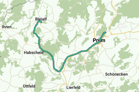 Etappe 5.5 der Vennbahn. Für zwei zusätzliche Etappen in der Runde wird die 6. Etappe übersprungen. Ausgangspunkt Camping Bleialf, Endpunkt Camping Prüm.