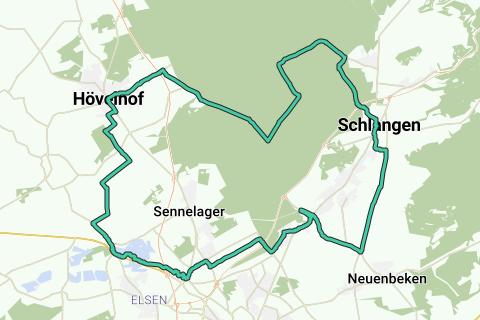 Entdecke auf dieser Freizeit-Fahrradtour in Hövelhof die Schönheit von Schloss Neuhaus und die malerischen Orte Hövelhof und Schlangen. Erlebe eine entspannte Fahrt durch die idyllische Landschaft.