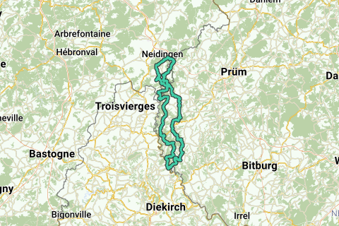 Diese Strecke führt zu einem kleinen Teil durch Belgien (nahe dem Dreiländereck Belgien, Luxemburg, Deutschland) und Luxemburg, aber größtenteils durch die deutsche Südeifel. Dieser Teil der Südeifel wird Islek genannt und zeichnet sich durch Hochebenen (mit schöner Aussicht) aus, die tief von bewaldeten Flusstälern (wie denen der Flüsse Our und Irsen) durchschnitten sind. Die Straßen in dieser Gegend sind sehr ruhig und im Allgemeinen von guter Qualität. Die vielen Anstiege mit Steigungen oft über 10% und manchmal bis zu 18% machen die Strecke schwierig. Folgende Anstiege befinden sich auf der Strecke (gegen den Uhrzeigersinn folgend):