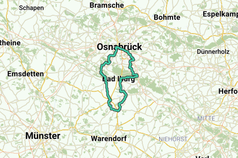 Ein schöner Radweg durch den Tuetoburger Wald nach Osnabrück und über ein paar Anstiege zurück zum Gasthaus Wiemann Sander.