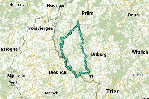Pronsfeld-Lunebach-Peffingen- Prumzurlay-Keltenhohe 365 m-Bollendorf-Ammeldingen an der Our-Roth an der Our-Bauler Berg 525 m-Falkenaul-Rodershausen-Sevenig bei Neuerberg-Arzfeld-Lunebach-Pronsfeld