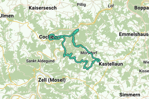 70 km hin und zurück vom Moselufer über Beilstein, Sosberg und Morsdorf.