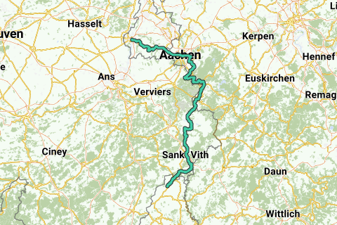 Weil sich das Zentrum von Aachen lohnt, führt die Route direkt durch sie. Wegen des jahrhundertealten Kopfsteinpflasters ist dieser Teil für Rennradfahrer etwas weniger komfortabel.
