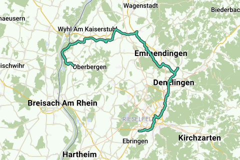 Freiburg - Denzlingen - Emmendingen - Riegel - Endingen - Sasbach - Burkheim - Breisach