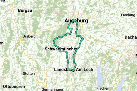 Diese Route führt Sie von Augsburg nach Landsberg am Lech entlang des Lechufers. Die Route, die größtenteils durch die Felder führt, ist perfekt, um die Stadt Augsburg mit ihrer Umgebung zu verbinden. Es hat eine Länge von 111 km. Unterwegs kommen Sie an Dörfern wie Königsbrunn, Schwabmünchen und Kaufering vorbei.