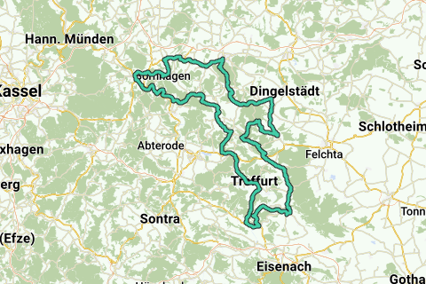 Diese Motorradroute führt Sie durch die grünen Wälder, tiefen Täler und sanften Felder des Naturparks Eichsfeld-Hainich-Werratal. All die Naturschönheiten, die unterwegs zu sehen sind, werden Sie zweifellos überraschen und Sie auf dieser einzigartigen Motorradtour mit einem schönen Gefühl zurückblicken lassen. Start- und Endpunkt ist Bornhagen.